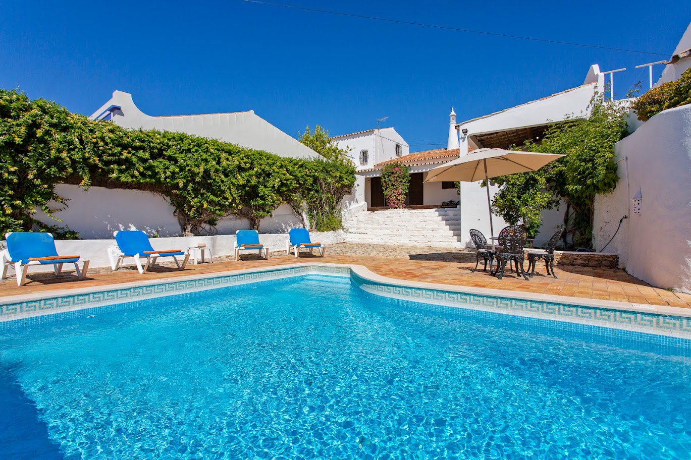 This quaint 3 bedroom villa in Boliqueime is set on a hillside, 500 m from the heart of the village’s church square. The views across the valley and down to the coast are amazing. The villa is an old, converted cottage, so expect traditional whitewashed walls and a higgledy-piggledy terracotta roof. Inside, exposed beams and fired-brick flooring finish the authentic feel. Ideal for families.