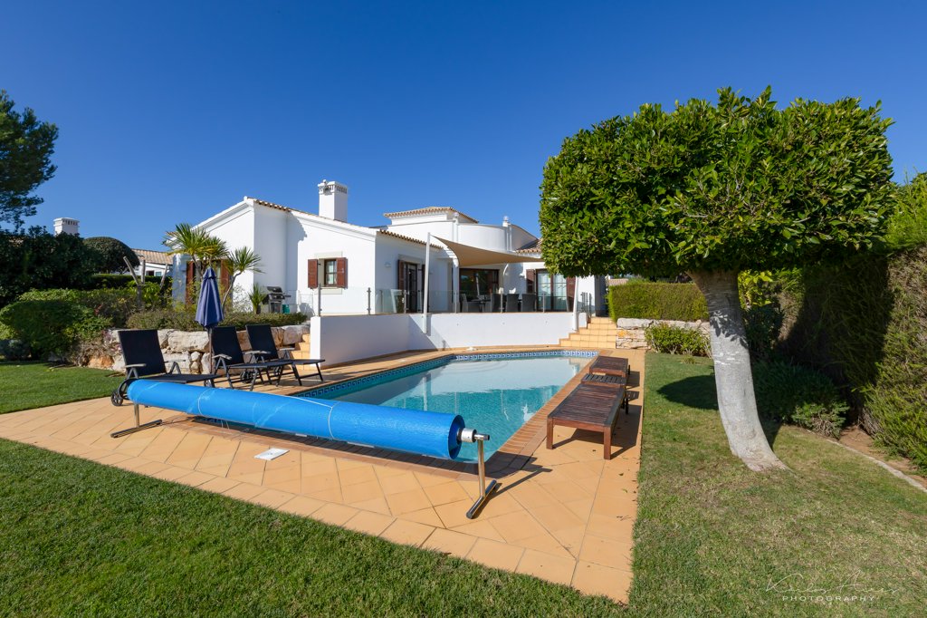 This spacious, detached villa enjoys commanding southerly views across the Burgau valley to the coastal hills. The Villa Pinheiro design features an impressive double-height entrance hall with stairs leading to a private roof terrace, perfect for sundowners or late-night star gazing. The heated 9m x 4,5m pool includes a children’s safety net and is set in a fully gated, mature Mediterranean garden, offering total seclusion. The open plan living area is furnished to a high standard in a light, modern decor. Patio doors from both the living and kitchen areas lead directly to the pool terrace, perfect for al fresco dining. Accommodation includes three double bedrooms, two with en suite facilities, a third shower room, and a room off the main living area with a sofa bed to accommodate additional sleepers.